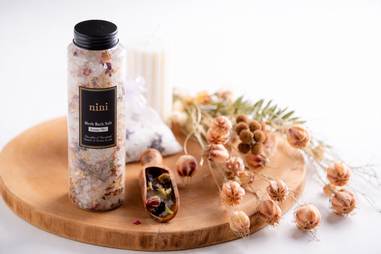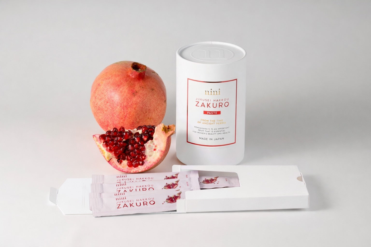 女性のバランスを整える果実・ザクロの力を日常に。「nini」は、ザクロ由来のインナーケアから天然精油が香るバスソルトやスキンケアまで揃うブランド。内側と外側、どちらからも美しさを育む時間をhibinoがお届けします。