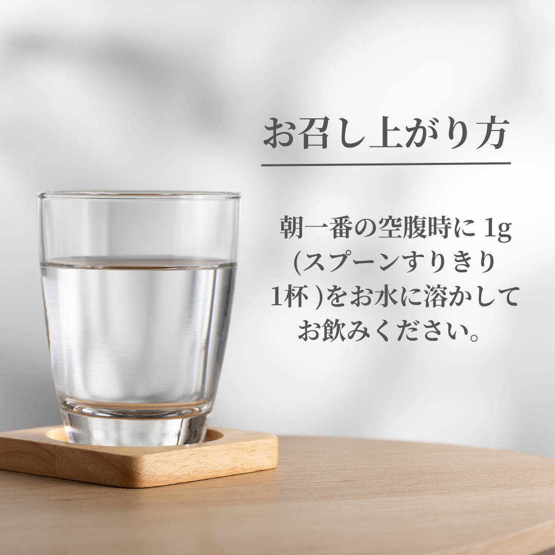 朝一番の瞬間中にスプーンすりきり1杯をお水に溶かしてお飲みください。