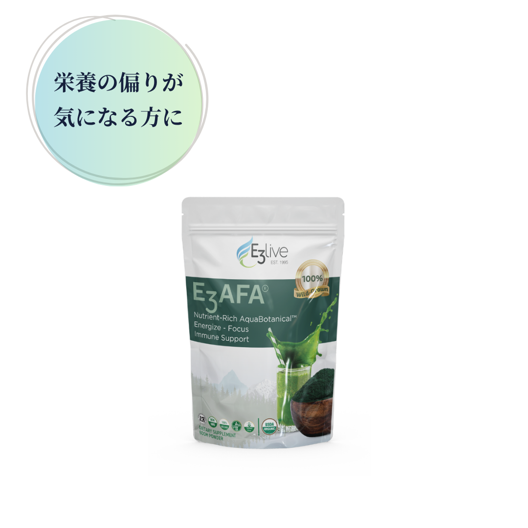 疲れやすさや栄養不足が気になる方へ。E3Liveのブルーグリーンアルジーは65種類以上の栄養素を含む自然派スーパーフード。hibinoおすすめアイテムをご紹介。