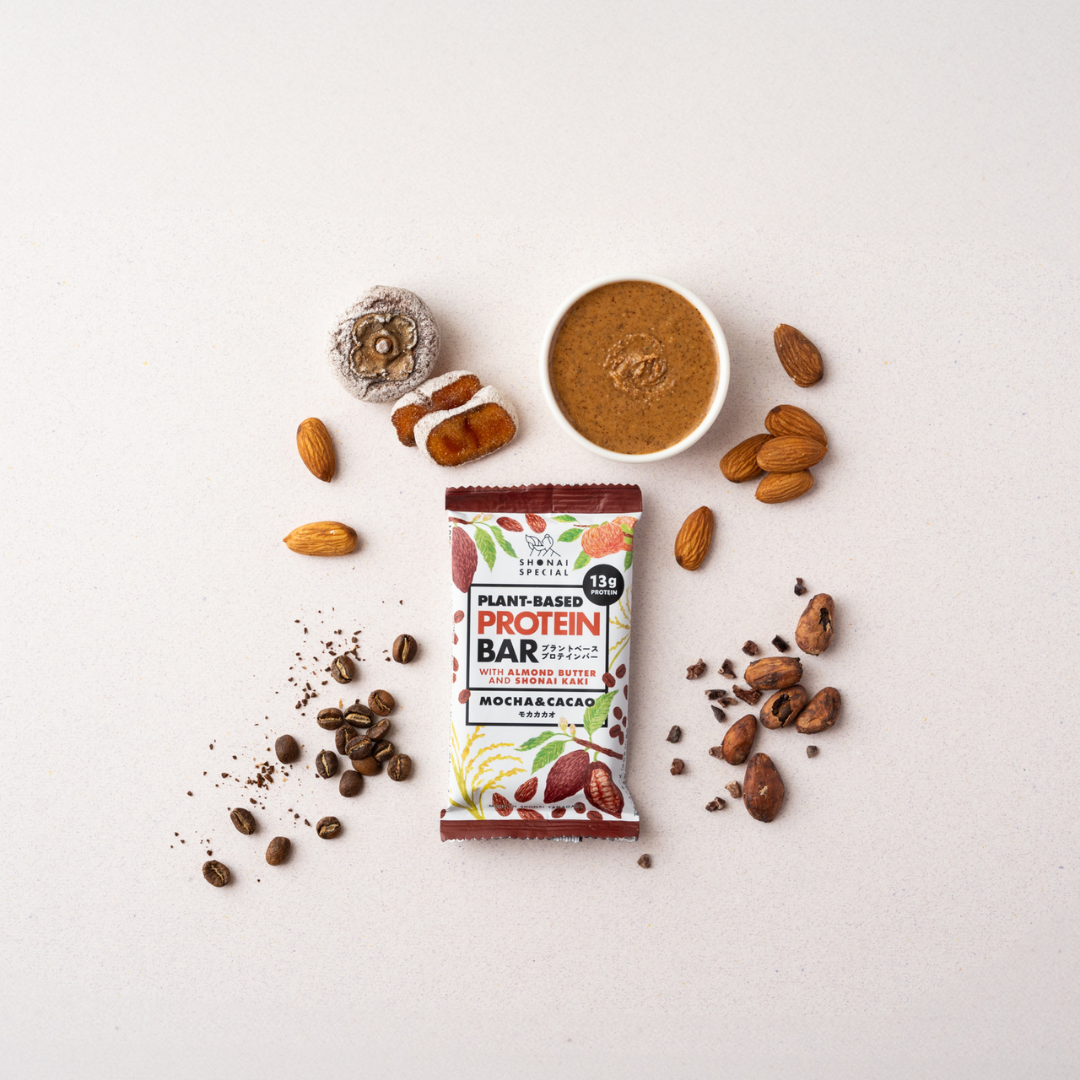 山形県庄内地域で育まれた自然の恵みと、厳選された素材を使用した国産プロテインバー。アウトドアやトレーニングにも、忙しい仕事の合間や普段のおやつや朝食にも。
