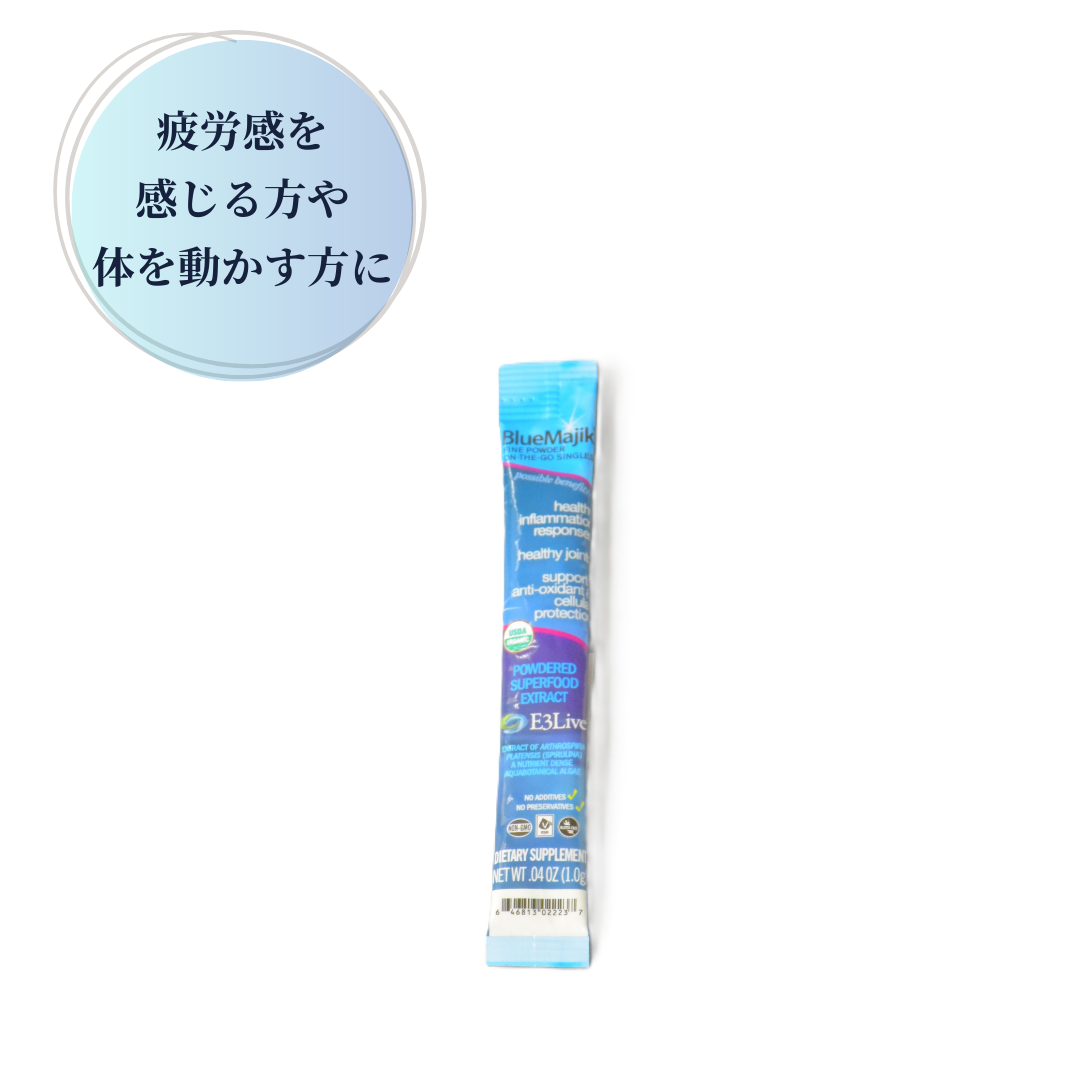 65種類以上のビタミン・ミネラルを含むブルーグリーンアルジーを、摂りやすいスティックタイプにしたアイテムです。