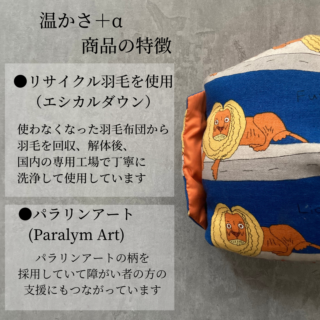 羽毛布団や羽毛小物を作り続けてる工場の実勢を基に、オーガニックコットンや再生羽毛、再生ポリエステルなどを商品開発に取り入れて、人にも環境にも優しい商品となっております。