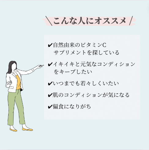 50㎎の、吸収しやすい天然のビタミンCを摂ることができます。