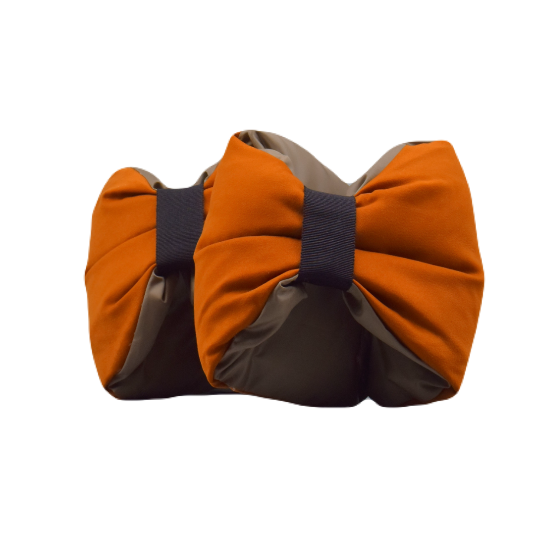 肌触りの良く、高級感のあるポリエステル生地を使用した、リサイクル羽毛の足首ウォーマー。
